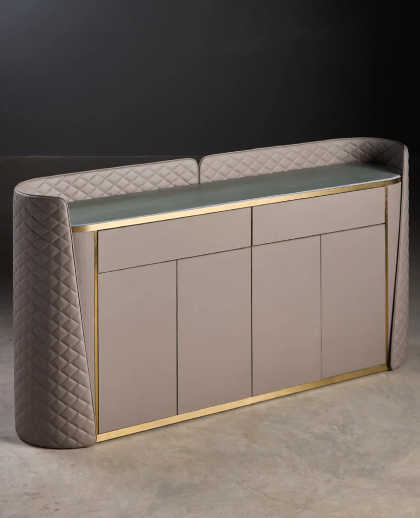 Elegant and refined, the Mocha Luxe Cabinet is upholstered in premium leather fabric, offering a soft-touch finish with a sleek silhouette. Its sculptural curves and subtle detailing bring a touch of sophistication to any modern interior. Ideal for stylish storage with a luxurious edge.